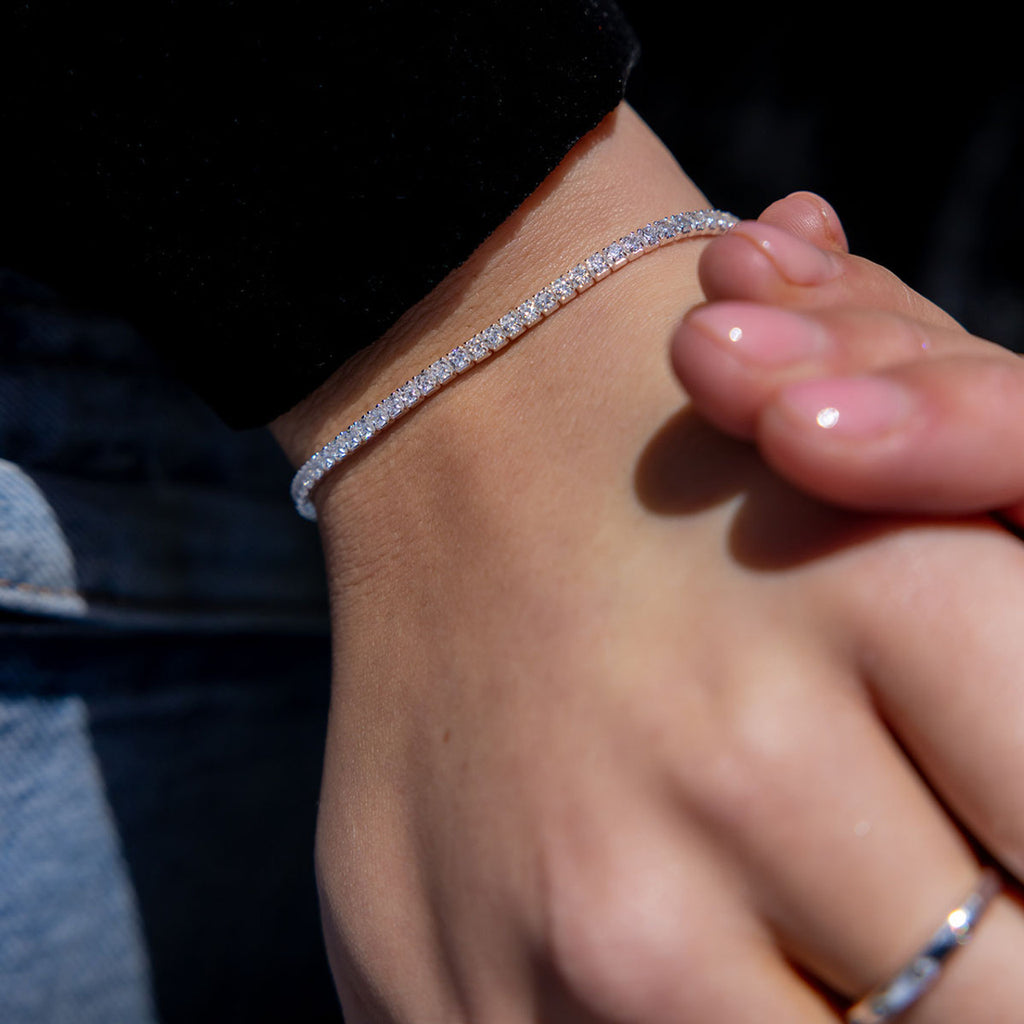 This stunning, classic tennis bracelet from Spoke 925 is embellished with sparkling cubic zirconia crystals and features a toggle slider fastening which easily adjusts for a snug fit.