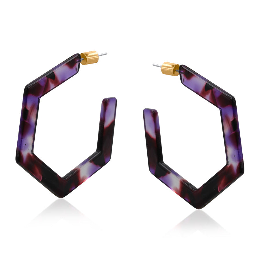Big Metal London Purple & Black Hexagon Hoop Earrings