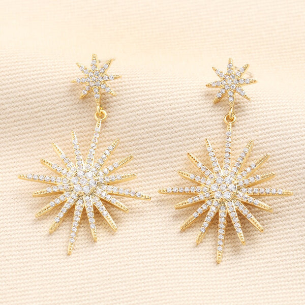 Gold Double Star Crystal Drop Earrings