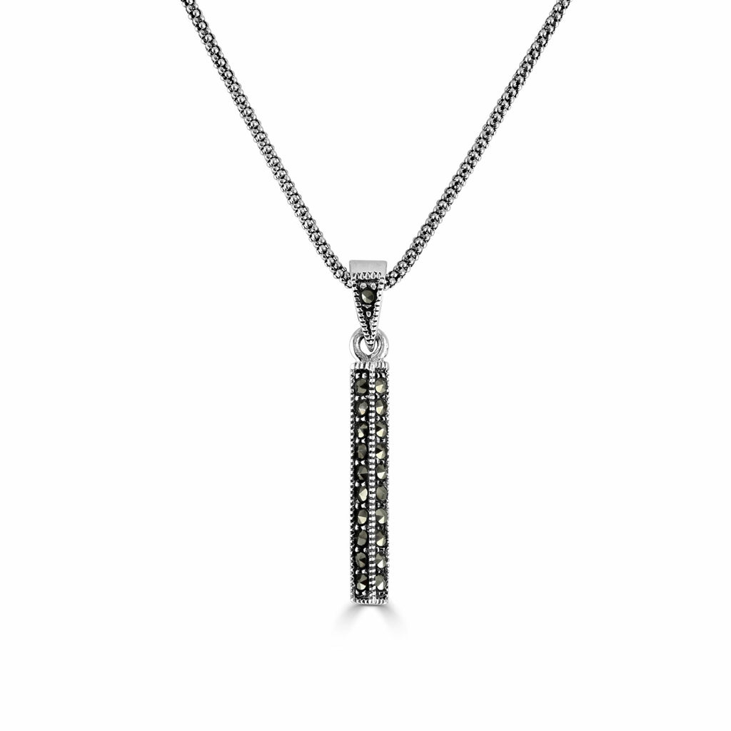 This beautiful sterling silver necklace from London Vintage features a column pendant, embellished with sparkling marcasite stones.