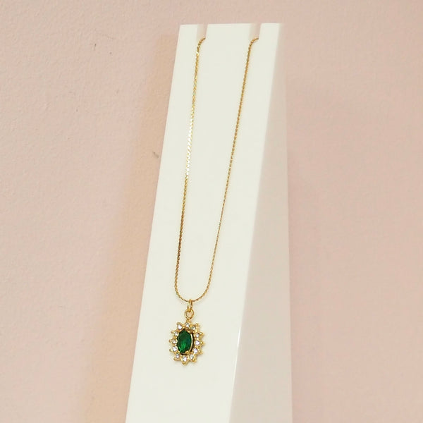 Emerald Green Oval Sun Gold Plated Stainless Steel Pendant