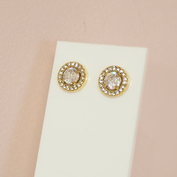 Clear Round Gold Plated Stainless Steel Stud Earrings