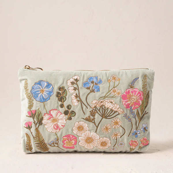 Elizabeth Scarlett Pressed Flowers Everyday Pouch in Sage