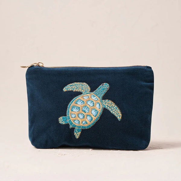 Elizabeth Scarlett Turtle Conservation Mini Pouch in Marine Navy