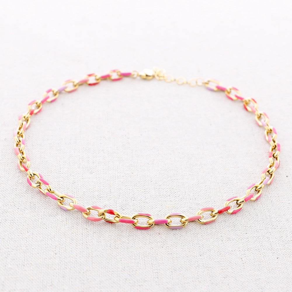 Sonata Pink Enamel Chain Steel Necklace
